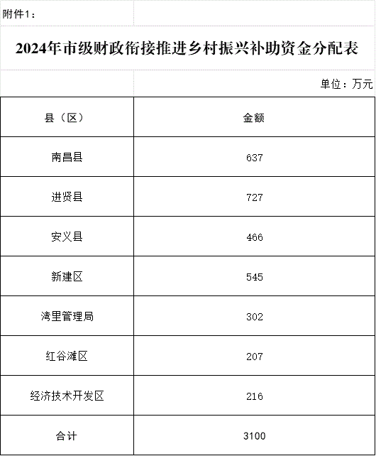 附件:1.2024年市级财政衔接推进乡村振兴补助资金分配表