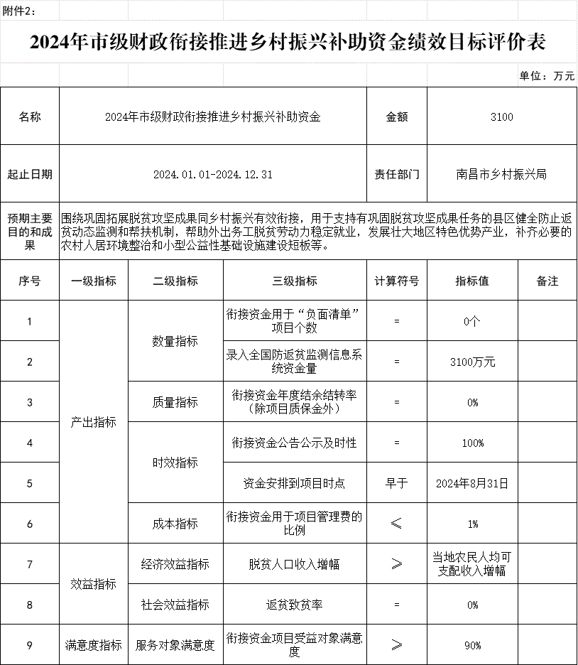 2.2024年市级财政衔接推进乡村振兴补助资金绩效目标评价表