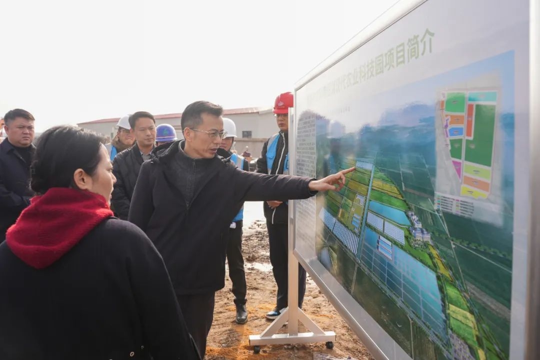 彭开先一行先后深入科技园规划展示区、中心沟渠建设现场、水产所科研基地、畜牧所科研基地及房建工程项目现场,实地察看园区规划实施进展,详细了解各功能区建设成效。在规划展示区,彭开先认真听取了市农科院关于科技园“高起点规划、高标准建设、高水平创建”的总体思路,对园区划分的现代农业科技创新试验区、科技成果转化示范区、科技服务综合配套区及三产融合展示区等功能布局表示认可,并提出三点要求:一是要强化科技创新引领,聚焦智慧农业、生态循环等领域,加快关键技术攻关和成果转化;二是要深化产业融合发展,推动“农业+科技”“农业+生态”模式创新,延伸产业链条,提升综合效益;三是要严守安全生产底线,保障农民工合法权益,确保项目按期高质量交付。
